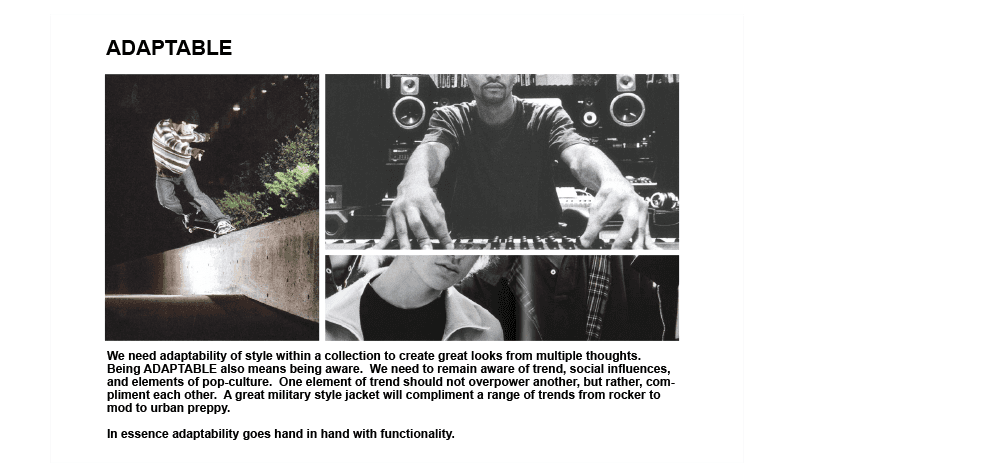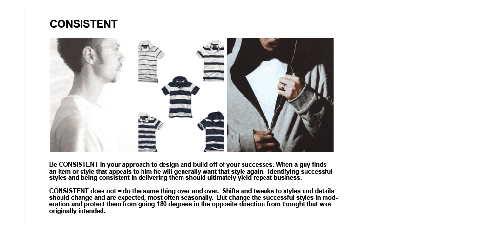 Following is a collection from the Old Navy Men's product repositioning I led, creating the vision, standards, and strategy. From sketching to in-country development, I worked side-by-side with my design team of 14.
