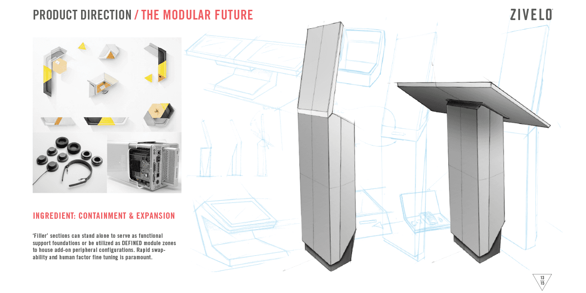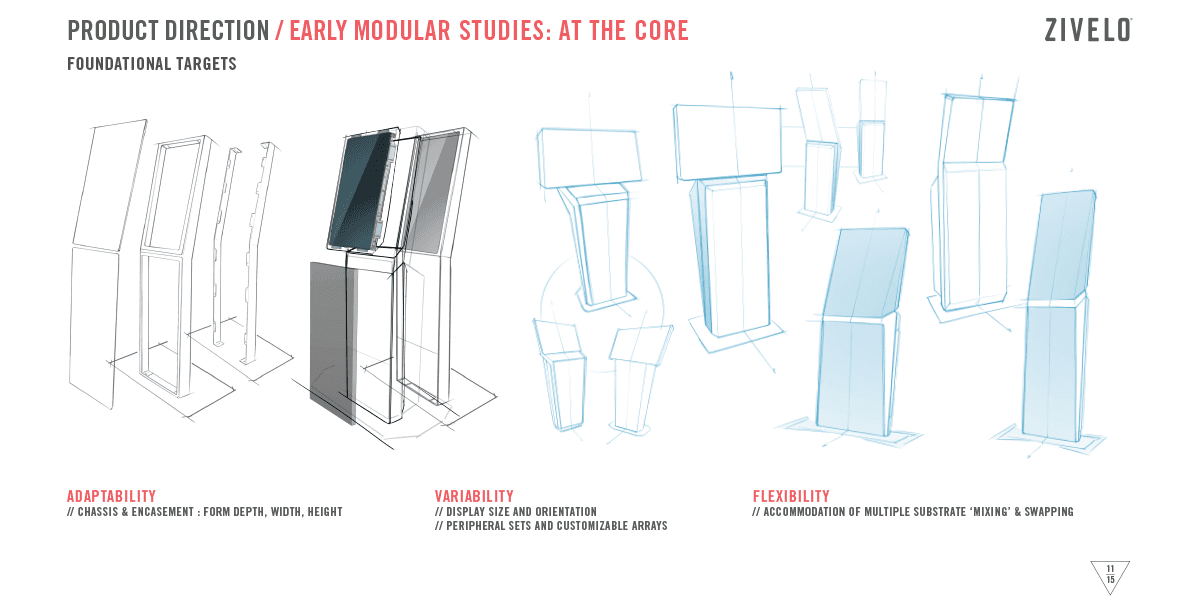 I led the vision and direction for the two amazing Industrial Designers on my team (David Tipp and Warren Tenney). The vision of 'Modularity' carried over into Verifone's kiosk lineup after acquiring ZIVELO in the latter part of that year.