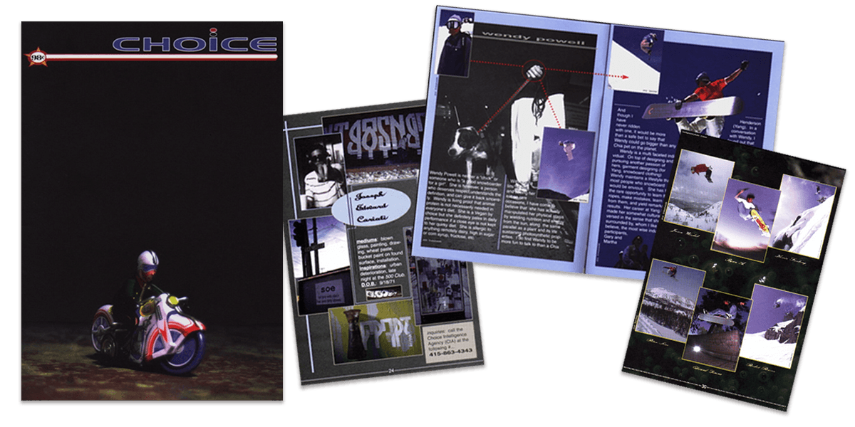 A few ads from Choice Snowboarding Apparel which ran in Transworld Snowboarding Magazine and Snowboarder Magazine.