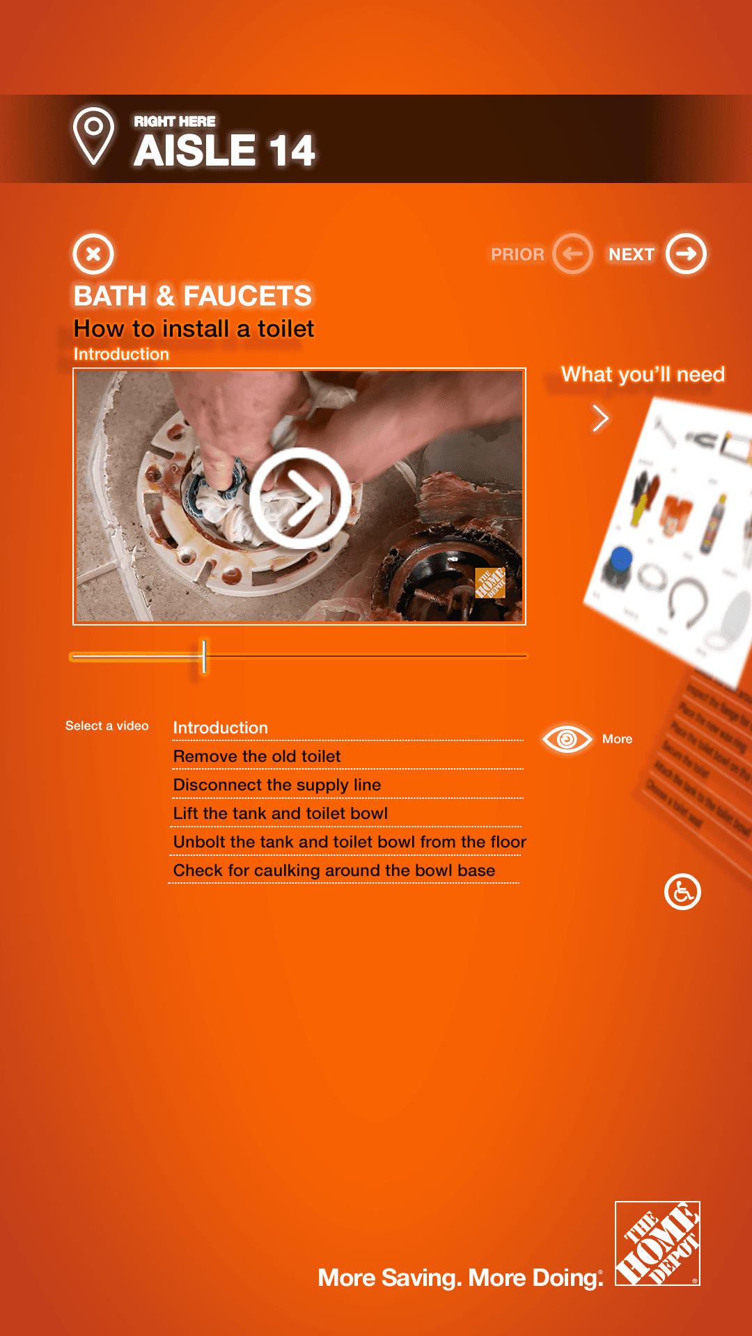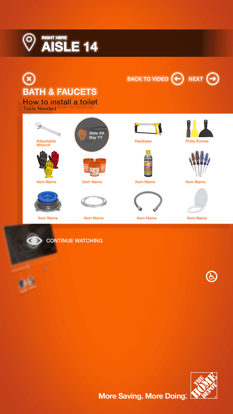 The Home Depot kiosks were developed to provide in-store product locating and meaningful contextual shopping and instructional pivots.
