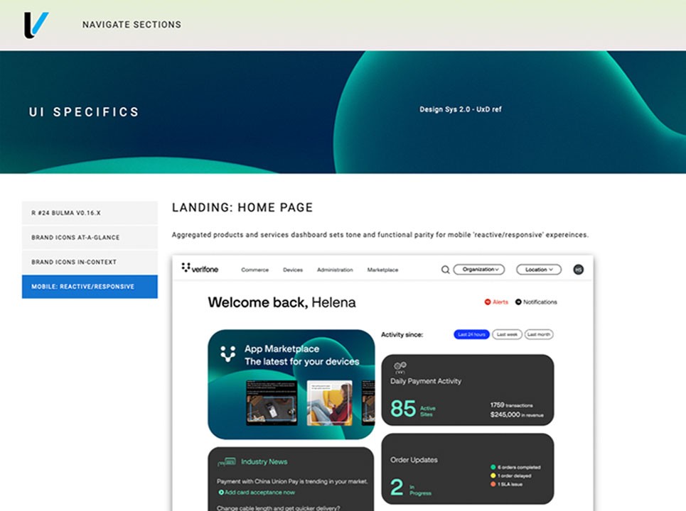 Above: Internal reference site created. Big themes, layers vs. pages, consistency of interactions and visual language, and new method to distill complexity and cognitive overload.